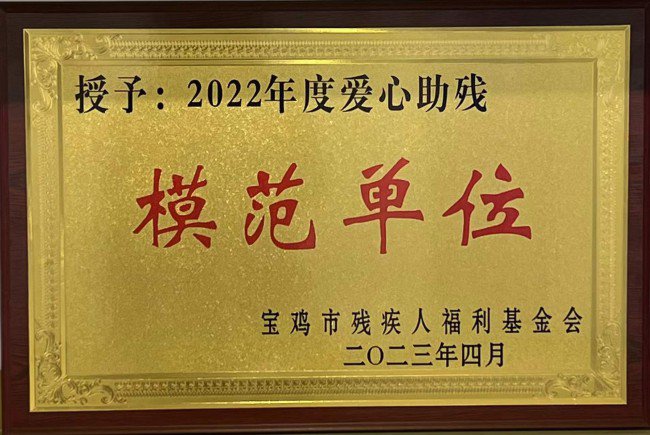 4月25日上午,宝鸡市残疾人福利基金会二届十一次理事会召开,宝鸡市国有资产经营有限责任公司荣获“2022年度爱心助残模范单位”。