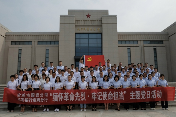 为缅怀革命先烈,弘扬党的优良传统,7月4日,市国资公司、浦发银行宝鸡分行党员90余人,赴扶眉战役纪念馆开展“缅怀革命先烈、牢记使命担当”主题党日活动。 国资公司与浦发银行全体党员合影留念 在扶眉战役烈士纪念碑前,党员向革命先烈敬献花篮、默哀致敬,共同缅怀革命先烈,表达了对先烈们的无限哀思。全体党员重温入党誓词,铭记作为一名共产党员的责任和义务,切实增强“不忘初心、牢记使命”的责任感和使命感 。