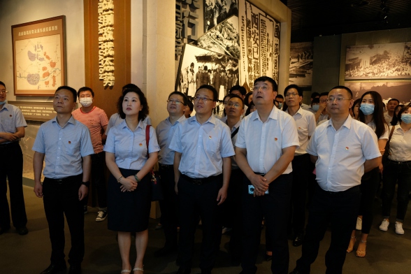 国资公司党委副书记张浩带领全体党员重温入党誓词 怀着对烈士的敬仰,大家参观了扶眉烈士纪念馆并观看了相关文献资料,对扶眉战役在解放战争特别是解放大西北的历史意义有了更加深刻的了解。一幅幅历史照片,一件件烈士遗物,一个个杀敌场景,一段段影像资料,生动真实的重现了扶眉战役的历史全貌和壮烈场景,先烈们在战火中抛洒热血、血战到底的大无畏精神与对祖国的忠诚,深深地震撼着在场的每个人。 全体党员参观扶眉烈士纪念馆