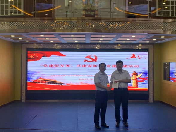 全体党员细心聆听讲解 参观结束后,全体党员开展了“讲好党史故事、传承红色基因”主题宣讲活动。活动上市国资公司党委、浦发银行宝鸡分行党支部互赠党建共建牌匾以及学习书籍,期望通过党建共建活动实现“资源共享、优势互补、互相促进、共同提高”的基层党建工作新格局;互赠仪式后,党员们通过朗读红色故事、演唱红色歌曲等形式表达了对党的祝福,一首首慷慨激昂的红歌,一则则鲜活的故事激励全体党员干部职工坚定理想信念、传承红色基因。通过本次活动激发了全体党员积极担当作为,敢于创新实干的国资精神。 国资公司党委书记、董事长罗鹏伟向浦发银行宝鸡分行赠送党建共建牌匾