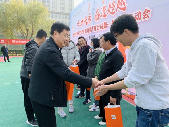 11月14日,国资公司第一届职工运动会在滨水生态园拉开帷幕。国资公司党委书记、董事长罗鹏伟出席开幕式并致辞,公司党委班子全体成员出席开幕式并作为运动员参加了本次比赛。 董事长罗鹏伟在运动会开幕式上致辞 罗鹏伟在开幕式上表达了对国资公司第一届职工运动会的热烈祝贺,对国资公司未来发展的殷切期望,他鼓励广大员工在建功立业新时代的同时要加强运动、保持健康,与国家同呼吸,与企业共成长。 参加此次运动会的有来自国资公司本部和下属单位共7个代表队,200余名干部职工代表。比赛项目内容丰富,有拔河、定点投篮、螃蟹赛跑、摸着石头过河、还有体智并重的传递鸡毛信等6大类的比赛。广大运动员弘扬“更快、更高、更强”的奥林匹克体育精神,每秒必争、每分必抢,充分展示了国资人敢打、敢拼、敢闯的精神面貌和团结拼搏、永不言弃、势争一流的奋斗姿态。 天高气清云飞扬,运动场上谁更强。在紧张、活泼、充满乐趣的比赛中,场上的广大运动员们发扬了“友谊第一,比赛第二”“快乐第一,成绩第二”“安全第一,运动第二”的体育精神,在赛场上尊重裁判、遵守规则、沉着冷静、你追我赶、奋勇拼搏,为集体争光。 本次运动会在丰富职工业余文化生活的同时,展示出国资公司各单位朝气蓬勃、活力盎然的团队风采,提升了企业凝聚力和向心力,激发了国资人积极向上、顽强拼搏的工作热情和精诚团结、奋勇争先的运动激情,为推动国资公司高质量发展作出积极贡献。 董事长罗鹏伟为获奖人员颁发奖品
