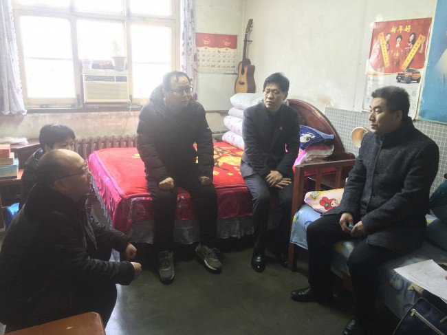 在张鹏家中,王海斌与其亲切交谈,嘘寒问暖,仔细询问他的身体和生活情况,详细了解致困原因,鼓励他保持乐观心态、坚定走出困境的决心,尽力帮助他们解决实际困难,确保他们过一个快乐祥和的春节。