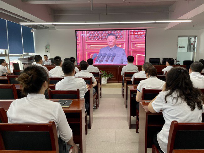 为热烈庆祝中国共产党成立100周年,扎实推进党史学习教育走深走实,7月1日,国资公司党委组织下辖1个党总支、5个党支部共101名党员集中收看“庆祝中国共产党成立100周年大会”直播盛况。 总书记的讲话振奋人心,催人奋进。在第二个百年奋斗目标新的赶考路上,作为一名共产党员,我们要紧密团结在以习近平总书记为核心的党中央周围,同人民想在一起,干在一起,风雨同舟。为实现中华民族伟大复兴中国梦贡献自己得力量。