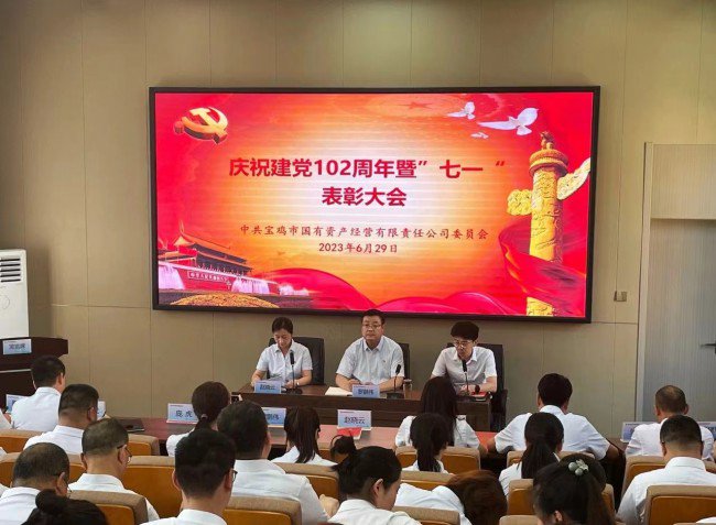 6月29日,宝鸡市国有资产经营有限责任公司召开庆祝中国共产党成立102周年暨“七一”表彰大会。公司党委书记、董事长罗鹏伟参加会议并讲授专题党课,会议由党委副书记、纪委书记赵晓云主持,公司全体党员、干部及新入职员工参加会议。