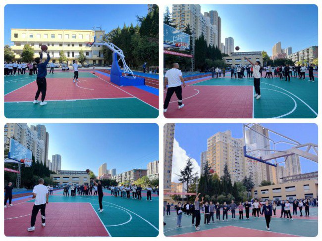 何妨摘星,投掷梦想。在大家形态各异的投篮姿势下,空中划出一道道优美的抛物线,瞄准、屈膝、起跳,这些连贯动作一气呵成,篮网“唰、唰”进球的声音此起彼伏。场下的啦啦队们,为比赛队员们加油鼓励,掌声、笑声、加油声、欢呼声充斥在整个操场。