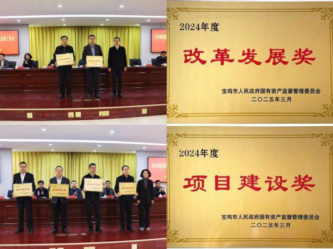 3月31日,全市国资监管国企改革工作会议召开,宝鸡市工业发展集团有限公司荣获2024年度“改革发展奖”“项目建设奖”,工发集团党委书记、董事长罗鹏伟参会领奖并作交流发言,党委副书记、总经理师红勤参会领奖。 2024年,工发集团全面学习贯彻党的二十大和二十届二中、三中全会精神,贯通落实市委、市政府决策部署和市国资委工作要求,统筹推进稳增长、促改革、防风险、保稳定、强党建等各项工作,聚力国企改革深化提升行动,深化拓展“三个年”活动,聚焦“四个平台”建设,积极谋划实施新项目,培育引导新兴产业落地宝鸡,高质量发展迈出坚实步伐。稳增长坚定有力,主要生产经营指标稳中向好,2024年营业收入超过50亿元,利润超过2800万元,实体产业收入比例不断提高,集团公司信用评级获得AA+,正逐步朝着产业结构科学、布局合理、各项业务稳健快速发展的良好局面不断迈进。 交流发言
