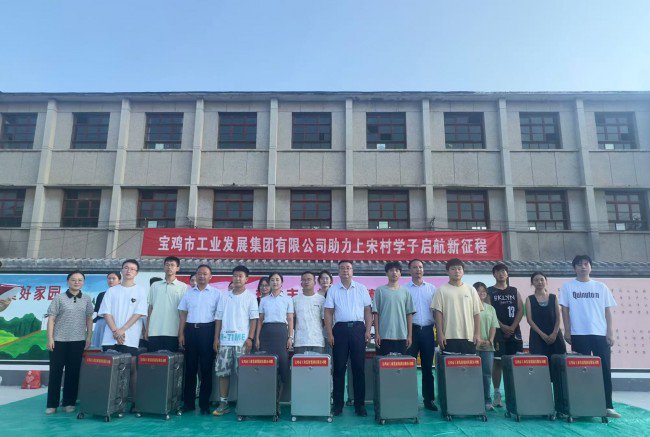 活动中,工发集团为学子们赠送了精心准备的拉杆箱。罗鹏伟表示,这份礼物承载着家乡父老和工发人的深情厚望,希望它们陪伴学子们走进知识殿堂,托起美好理想,无论走多远,要记住根在宝鸡,情系桑梓。家乡永远是学子们坚实的后盾,期待学子们学有所成,为家乡发展贡献力量。 感恩致谢传真情 青春立志赴新程 绛帐镇党委书记樊春晖代表全体村民对工发集团的慷慨善举表示衷心感谢,他坚信在社会各界的关心和支持下,上宋村的教育和未来将更加美好。 随后,集团公司的青年员工们深情而激昂的朗诵《带着梦想 再一次起飞》,用真挚的语言回顾了学子们寒窗苦读的奋斗、父母师长的无私付出,展望了充满希望的未来征程。 在温馨的捐赠仪式上,工发集团领导亲手将拉杆箱送到学生代表手中,传递关怀与鼓励。学生代表在发言中对工发集团和社会各界的关爱深表感激,承诺将珍惜机会,刻苦学习,以优异成绩回报家乡和社会。 播撒希望薪火 共绘振兴蓝图 扶风县绛帐镇上宋村是工发集团定点结对帮扶村,驻村工作队进驻以来,以推进乡村全面振兴、巩固脱贫攻坚成果为己任,发挥国有企业优势,紧密协同村委会,谋划产业、实施项目、扎实工作,积极为乡村振兴作贡献。此次“金秋送暖 助学圆梦”活动,是工发集团及其驻村工作队践行国企社会责任、支持乡村教育振兴的生动实践,将激发更多乡村学子勤学奋进的志向,营造崇尚知识、励志成才的浓厚乡风,为上宋村的长远发展和乡村振兴注入源源不断的动力与希望。